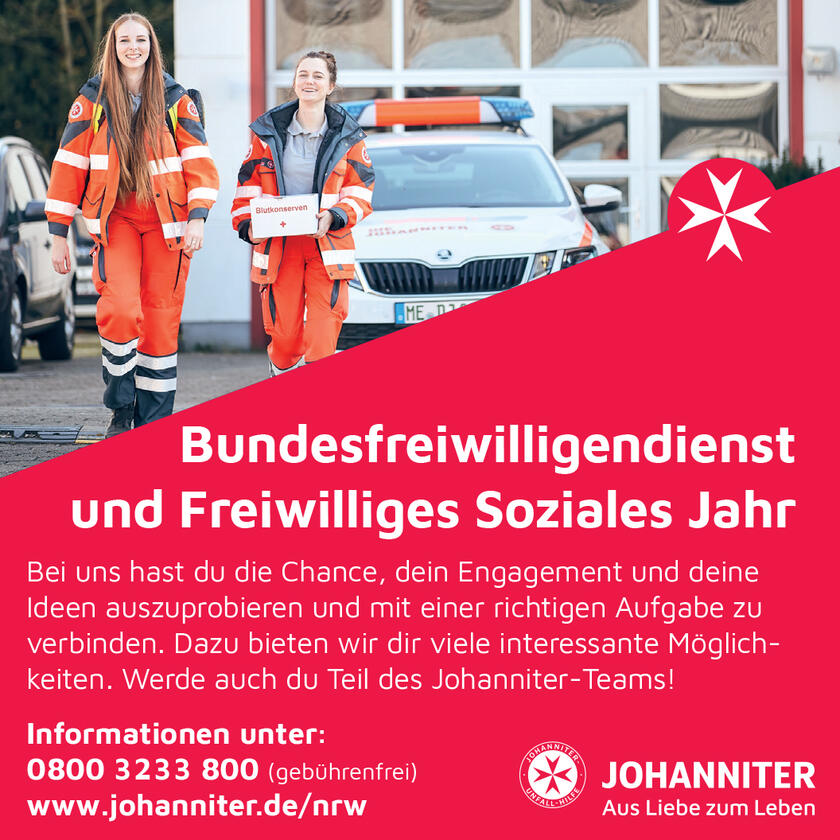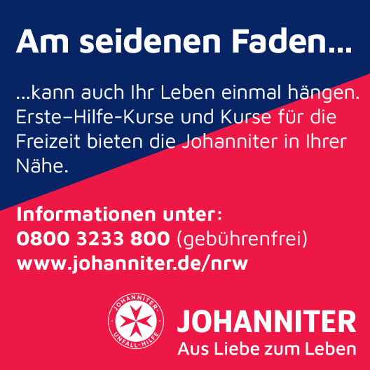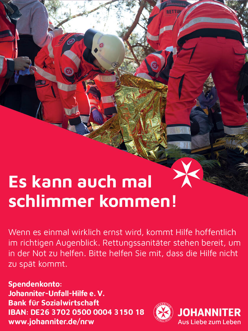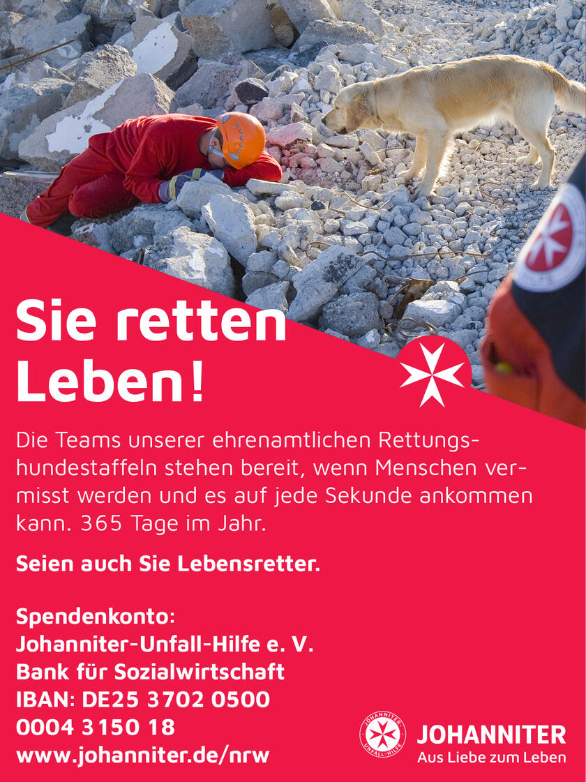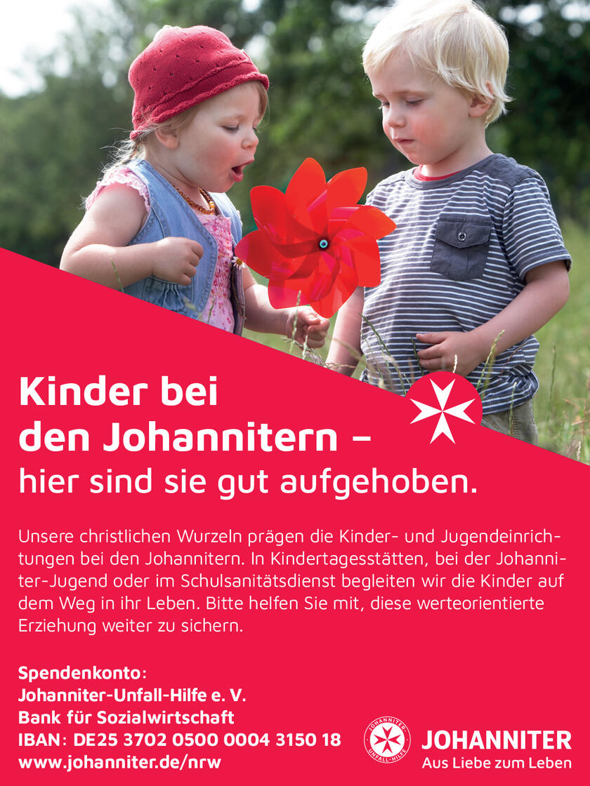 Über die Zusendung eines Belegexemplars, auch in digitaler Form, freuen wir uns. Vielen Dank! Für Freianzeigen kann keine Zuwendungsbescheinigung der Johanniter-Unfall-Hilfe ausgestellt werden.