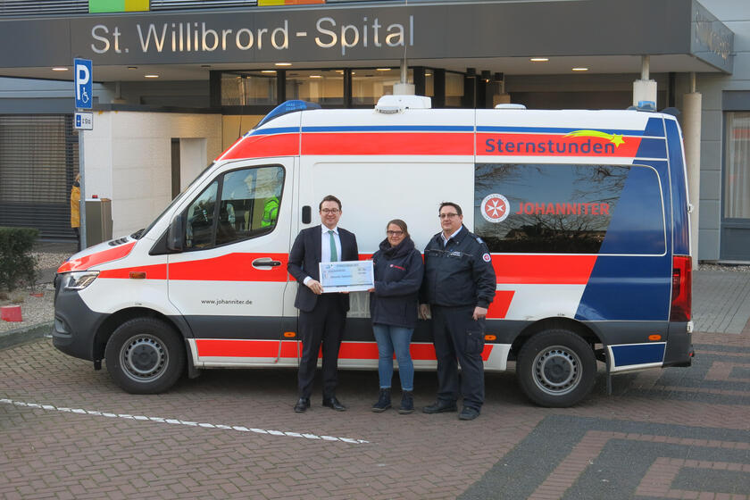 Die Sternstunden freuen sich über eine Spende des St. Willibrord-Spitals in Emmerich. Bisher konnten die Sternstunden rund 50 Fahrten mit schwerstkranken Menschen erfüllen - mit dem Geld sollen weitere Fahrten finanziert und Herzenswünsche erfüllt wer