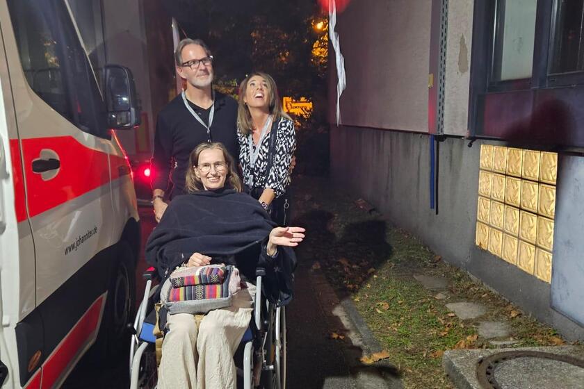 Da Sylvia im Rollstuhl sitzt, erhielten wir kurzfristig die Anfrage, ob wir sie mit unserem Sternstundenwagen begleiten können. Und natürlich haben wir das möglich gemacht. Unsere Ehrenamtlichen Bianca und Marvin haben sie den ganzen Abend lang begleitet.
