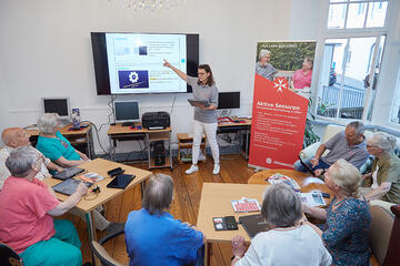 Hier setzt die Hilfe der Aktiven Senioren an – mit ihren Angeboten für den Alltag. Denn ob im Besuchs- oder Fahrdienst, Englischkreis oder in der E-Bike-Gruppe: Gesellschaft, Mobilität oder digitale Bildung sind auch im fortgeschrittenen Alter wichtig. Unter der Devise „Senioren helfen Senioren“ geben die Aktiven Senioren im Ruhestand ihr Wissen an andere weiter und leiten so seit vielen Jahren mit Erfolg zur Selbsthilfe an. Damit spannt sich ein Netzwerk von Helfenden und Hilfesuchenden, das seit Jahren viele sicher trägt und ihnen Spaß macht.