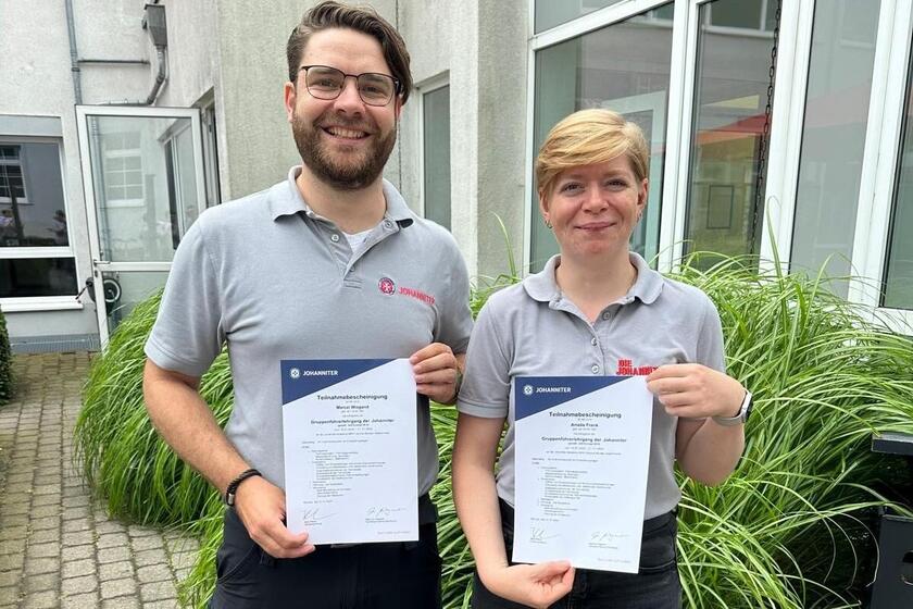 Herzlichen Glückwunsch an Amelie Frank und Marcel Wiegand! Beide haben den Lehrgang "Gruppenführer/in im Bevölkerungsschutz" an der Johanniter Akademie-NRW in Münster erfolgreich abgeschlossen.