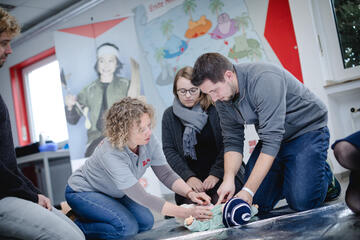 Wir bilden Ihre Mitarbeiterinnen und Mitarbeiter in Erster-Hilfe aus, um die Sicherheit in Ihrer Schule oder Kita zu gewährleisten.