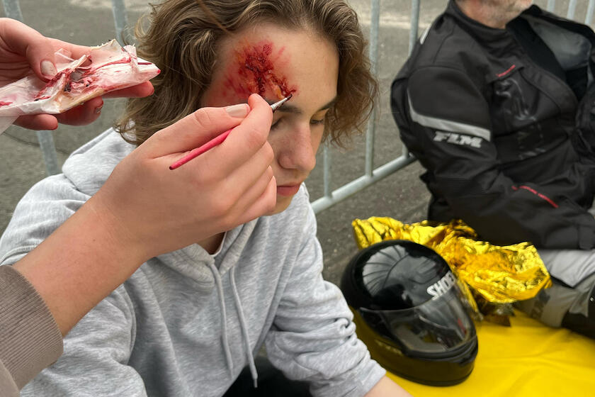 - Praxisnahes Training: Wir üben direkt an realistischen Szenarien – vom Sturz auf der Landstraße bis zur Massenkollision auf der Autobahn.