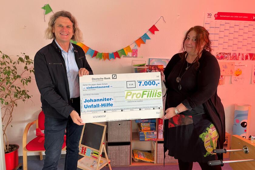 Eine Spende in Höhe von rund 7.000 Euro übergab Stiftungsgründer und Vorstand, Dipl.-Psych, Dipl.-Inform. Thomas Schieferstein, der ProFiliis-Stiftung an die Kinderbetreuung der Johanniter.