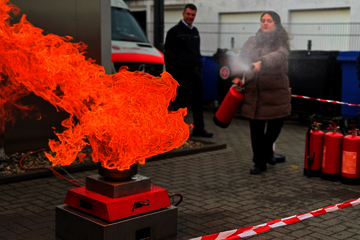 - Praktische Löschübungen mit verschiedenen Feuerlöschern