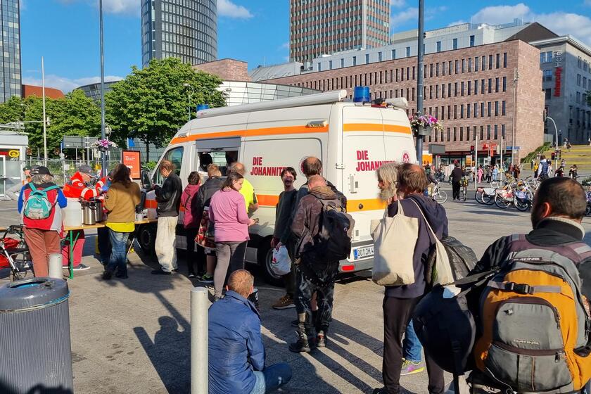 Wir helfen dort, wo Hilfe gebraucht wird. Jeden Dienstag und Freitag steuert das JOHA-Mobil neuralgische Punkte in Dortmund an – wie den Stadtgarten und den Hauptbahnhof. Dort versorgen wir obdachlose Menschen, Angehörige der Drogenszene und andere Bedürftige mit: