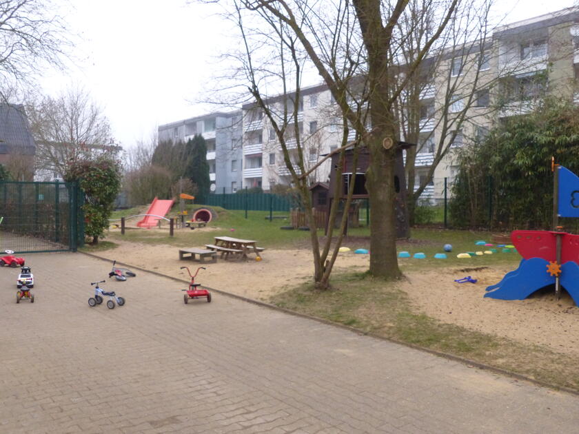 Die Einrichtung besteht seit 2009 in Hamm und liegt im Stadtteil Hamm-Heessen. In 2 Gruppen betreuen wir insgesamt 35 Kinder im Alter von 0;4-6 Jahren. Wir bieten Betreuungszeiten von 35 oder 45 Stunden an. Zusammen mit der AWO-Kita bilden wir ein Familienzentrum. Die offene Arbeit stärkt das gemeinsame Erleben und Lernen. Wir sehen jedes Kind als individuelle Persönlichkeit und Akteur seiner eigenen Entwicklung an. Es steht im Mittelpunkt und das pädagogische Personal sieht sich als Begleiter. Partizipation bedeutet für uns Mitbestimmung, Einbeziehung und Beteiligung der Kinder. Sie lernen Entscheidungen zu treffen und Verantwortung zu übernehmen, Meinungen zu respektieren und sich für etwas einzusetzen. Die religionspädagogische Arbeit im Alltag ist verankert. Wir vermitteln christliche Werte wie z.B. Vertrauen, Wertschätzung, Hilfsbereitschaft. Unterschiedliche Nationen und Religionen in unserer Einrichtung, regen die Kinder an, sich damit auseinander zu setzen und offen zu begegnen.