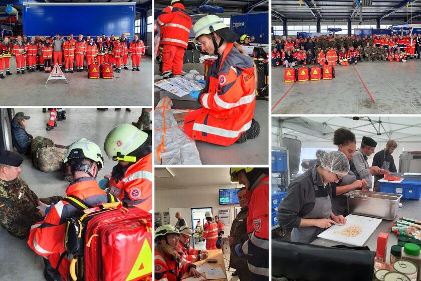 Erstmals trainieren Johanniter, Malteser und THW gemeinsam mit Reservisten der Bundeswehr nach der Methode einer Dynamischen Patientensimulation (DPS).