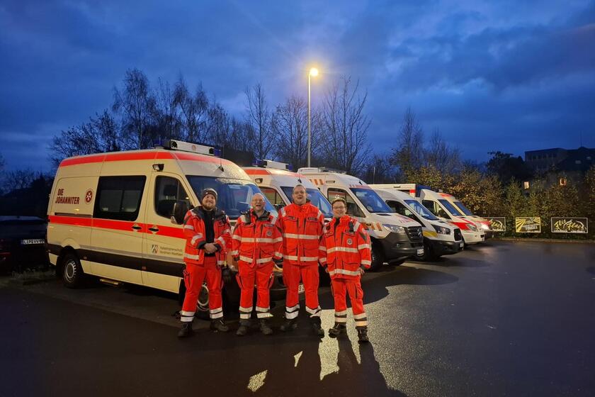 Ehrenamtliche Kollegen der Ortsverbände Bielefeld und Paderborn unterstützten am gestrigen Montagabend mit Krankentransportwagen, weiteren Fahrzeugen und bei der Verpflegung von Betroffenen.