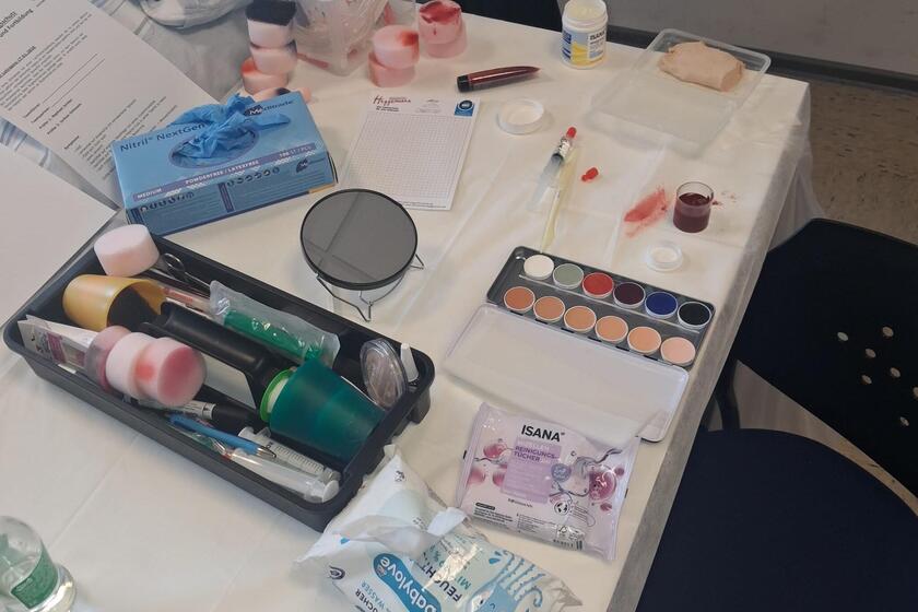 Die praktische Prüfung fand unter wirklichkeitsnahen Bedingungen mit geschminkten Unfalldarstellern der Johanniter statt, um den Ernstfall so praxisnah wie möglich abzubilden. Unser Paderborner Team der "Realistischen Unfalldarstellung" stellt dazu realitätsnahe Einsatzszenarien dar.