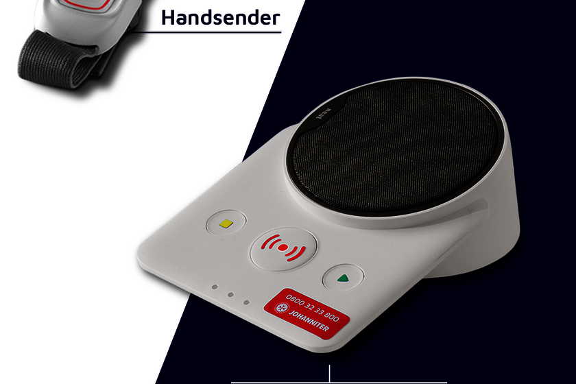 Erweitern Sie den Schutz deutschlandweit. Zusätzlich zur klassischen Hausnotruf-Basisstation mit stoß- und wasserfestem Handsender, wird der Johanniter-Hausnotruf für Zuhause und unterwegs mit einem Mobilgerät geliefert, das im Notfall über das Mobilfunkn