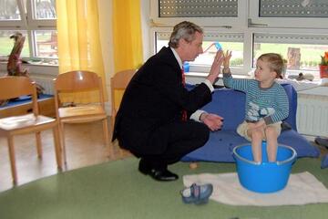 Neben den regelmäßigen Kneipp-Anwendungen sind uns das Fördern von Sprache, Psychomotorik und Sozialverhalten wichtig. Wir möchten den Kindern außerdem christliche Werte wie Respekt, Nächstenliebe und Toleranz vermitteln.