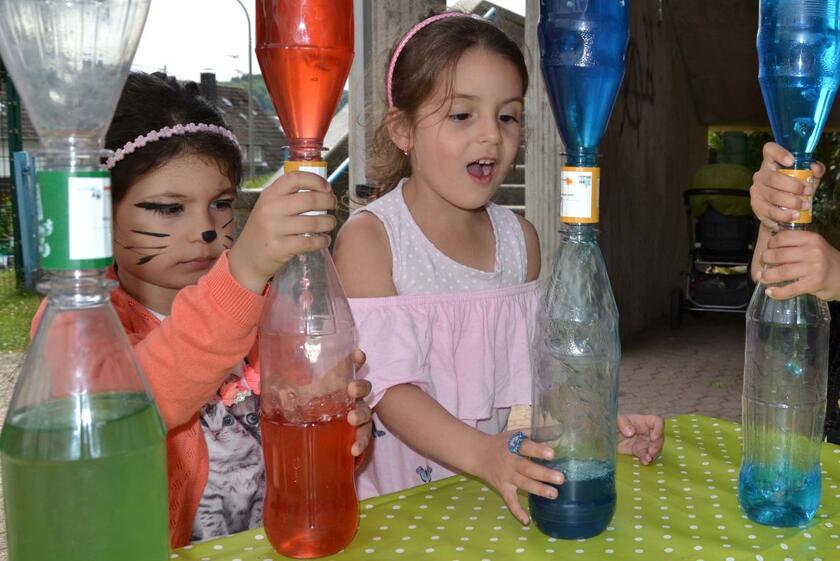 Die Johanniter-Kita Strombach in Gummersbach ist für ihre frühkindliche Bildung in Mathematik, Informatik, Naturwissenschaft und Technik als „Haus der kleinen Forscher“ zertifiziert.