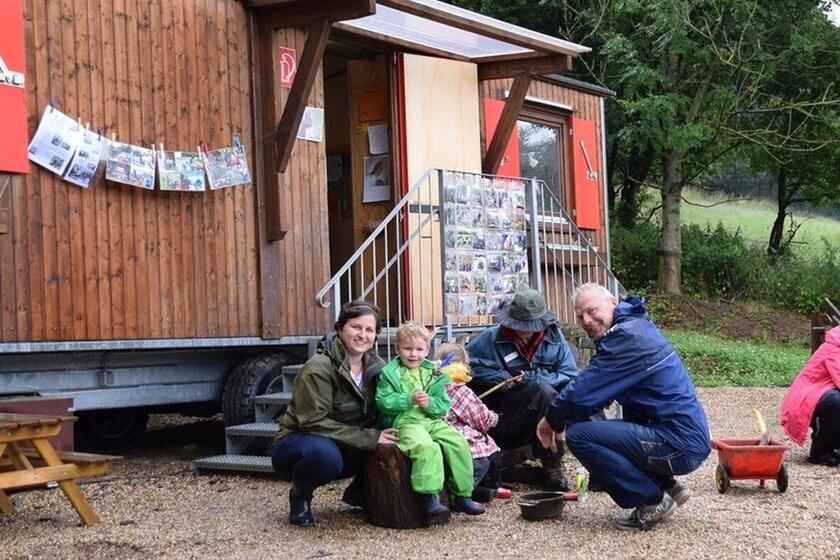 Begleitet von Fachkräften verbringen zwei Gruppen von jeweils bis zu 20 Kindern täglich mehrere Stunden in der Natur – darunter auch Kinder im Alter unter drei Jahren. Treffpunkt ist an jedem Morgen der Platz an den Kitawagen, von dort aus geht es in die umliegende Natur.