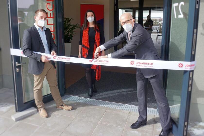 „Mein Dank und meine Anerkennung gelten Menschen wie ihnen, die in unserer Region mit viel Herzblut und Sachverstand wichtige Dienste für Seniorinnen und Senioren wahrnehmen“, mit diesen Worten hatte sich Ralf Schwarzkopf, stellvertretender Landrat des Märkischen Kreises, bei der Neueröffnung der Johanniter-Tagespflege in Iserlohn an deren Mitarbeitende gewandt. Mit dem Durchschneiden der Schärpe unter Einhalten der Schutzmaßnahmen durch den Vize-Landrat (Foto rechts) an den neuen Räumen der Tagespflege an der Handwerkerstraße 27 in Iserlohn ist die teilstationäre Einrichtung der Johanniter im Regionalverband Südwestfalen am Dienstag, 23. Februar 2021, offiziell eröffnet worden.