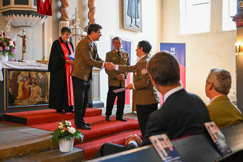 Konstantin von Eichborn wurde offiziell durch unsere Mitglieder im Bundesvorstand, Thomas Mähnert und Christian Meyer-Landrut, sowie unserer Landespfarrerin Anne-Christina Wegner in das Amt als ehrenamtlicher Landesvorstand eingeführt. Begleitet wurde die feierliche Segnung in der Andreaskirche zu Erfurt von zahlreichen Gästen aus Politik, Gesellschaft und der Welt der Johanniter. Unter den Gästen befanden sich die Thüringer Finanzministerin Heike Taubert, der Herrenmeister des Johanniterordens S.K.H. Dr. Prinz Oskar von Preußen und der ehemalige Innenminister von Thüringen Dr. Holger Poppenhäger.