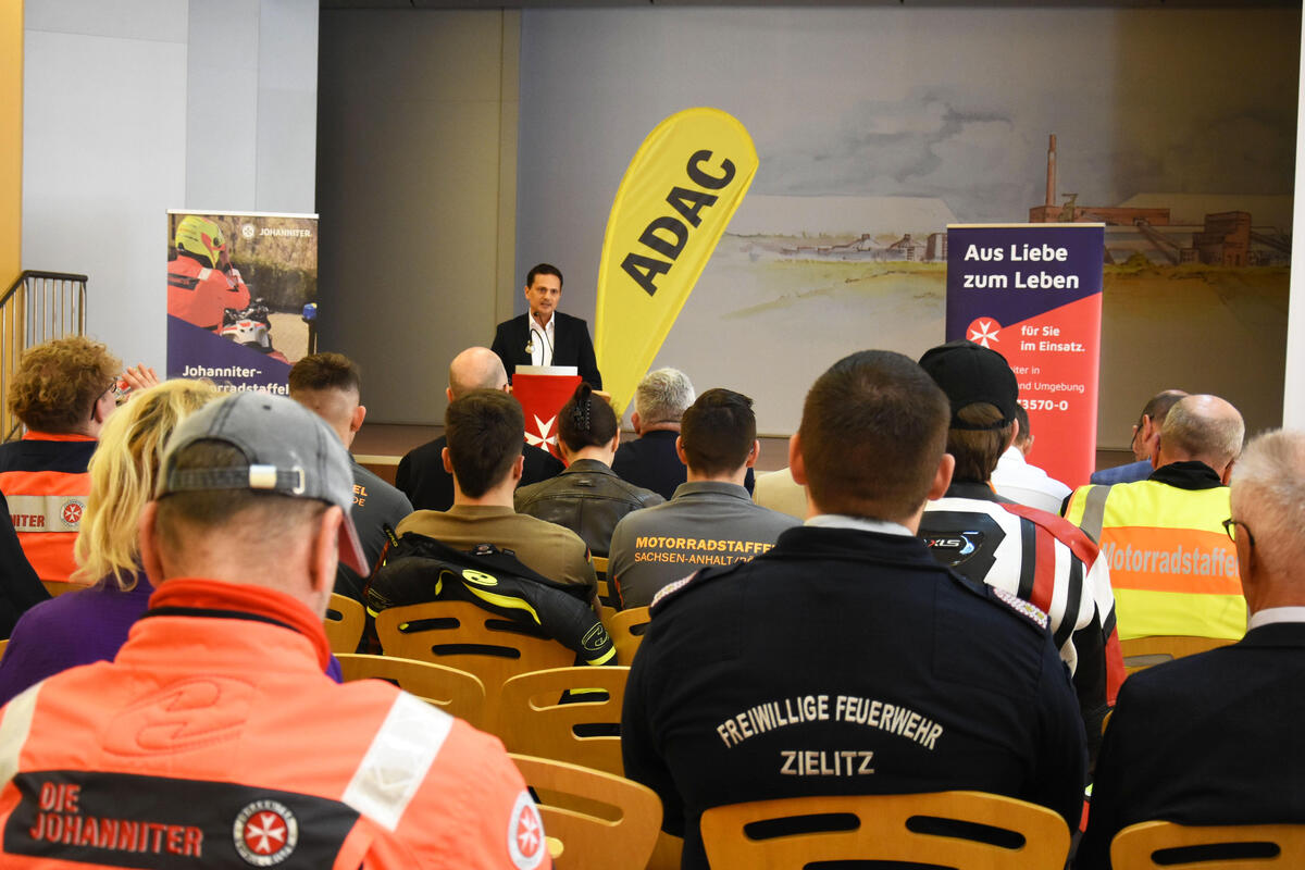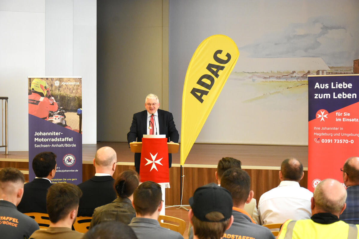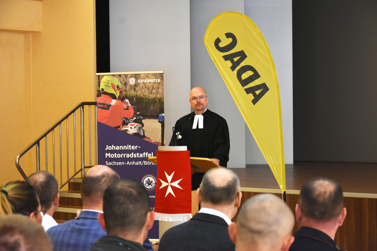 Unter den Gästen waren neben zahlreichen Fahrerinnen und Fahrern auch Landrat des Landkreises Börde und Schirmherr der Johanniter-Motorradstaffel Martin Stichnoth, Regionalvorstand im Regionalverband Thomas Glückstein, ADAC-Vertreter Mathias Krebs und Kreisbrandmeister des Landkreises Börde Matthias Schumann. Die Segnung der Fahrer und Fahrzeuge für die bevorstehenden Monate übernahm dankenswerterweise Pfarrer Michael Volta. Er gab damit den offiziellen Startschuss für die neue Saison.
