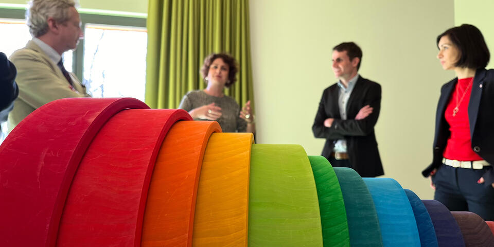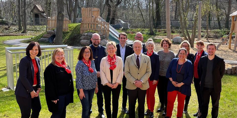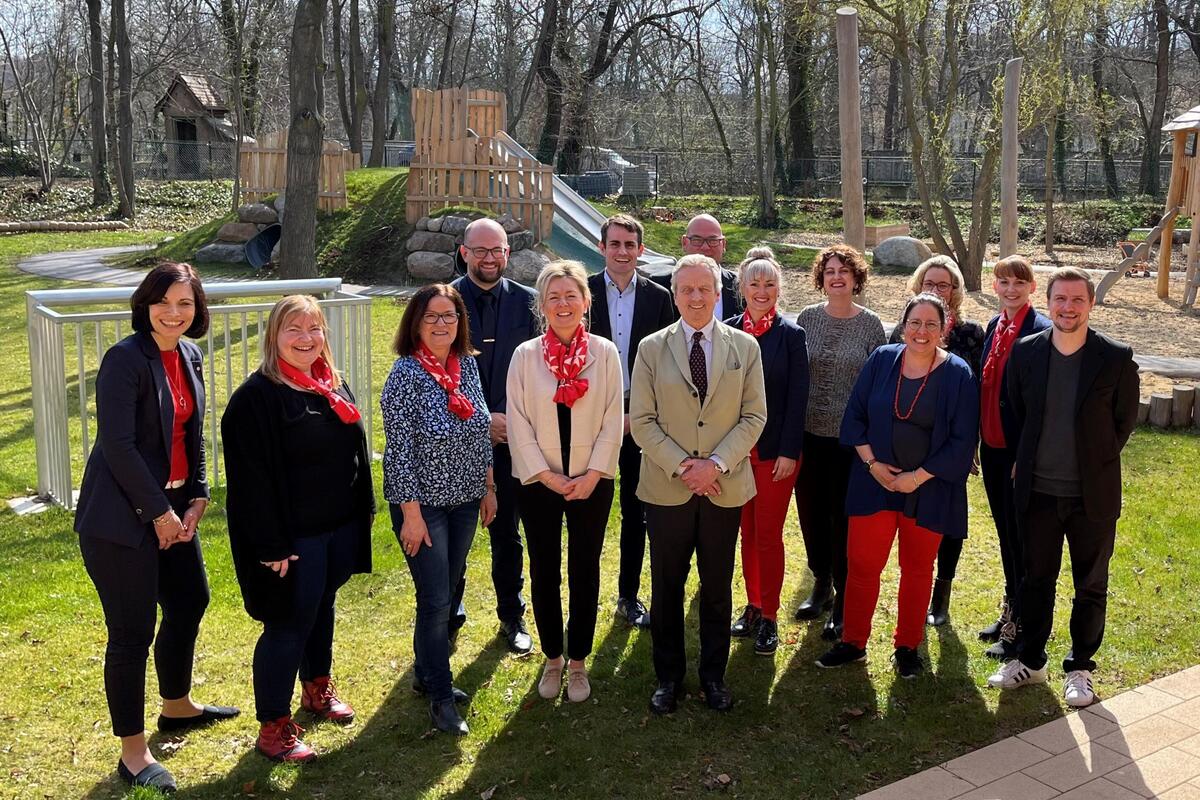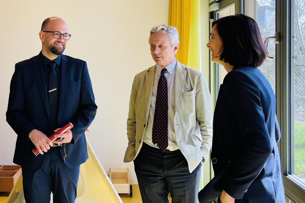Im letzten Jahr wurde die bundesweit 600. Johanniter-Kita in Betrieb genommen. Die neue Kita "Weltentdecker" in Arnstadt entspricht den neuesten Standards im Bereich Kita-Betreuung, wurde in nachhaltiger Holzbauweise gebaut und hat die Form eines "Y". Von Architektur, Außenbereich, Kita-Konzept und Arbeit der Mitarbeiterinnen und Mitarbeiter konnte sich der Herrenmeister vor Ort überzeugen. Bei einem gemeinsamen Rundgang mit Carsten Grimme und Phlipp Tausch, Regionalvorstand des Regionalverbandes Südthüringen, durch die Kita zeigte sich die Spitze des Johanniterordens mehr als beeindruckt vom Gesamtkonzept. In den Gesprächen wurden aber auch die aktuellen Herausforderungen im Kita-Bereich diskutiert.