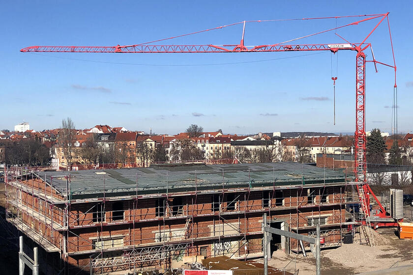 Auf der Baustelle der AndreasGärten ist viel in Bewegung. Derzeit erfolgen die Außen- und Innenarbeiten der zukünftigen Johanniter-Kita "Petersbergwichtel". Die Grundleitungen, die bereits gelegt wurden, sind nun verschlossen. Weitere Baumaßnahmen finden am Dach der Kita und auf dem Gebiet der neuen Tiefgrage statt.