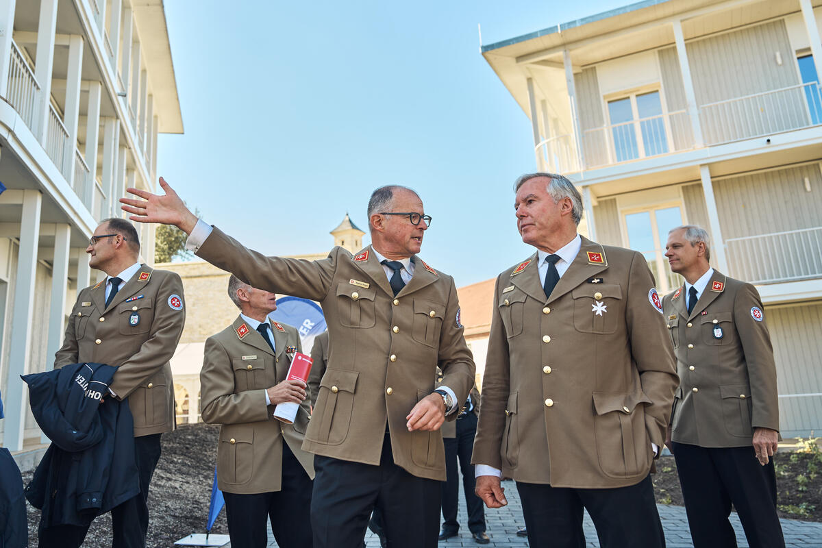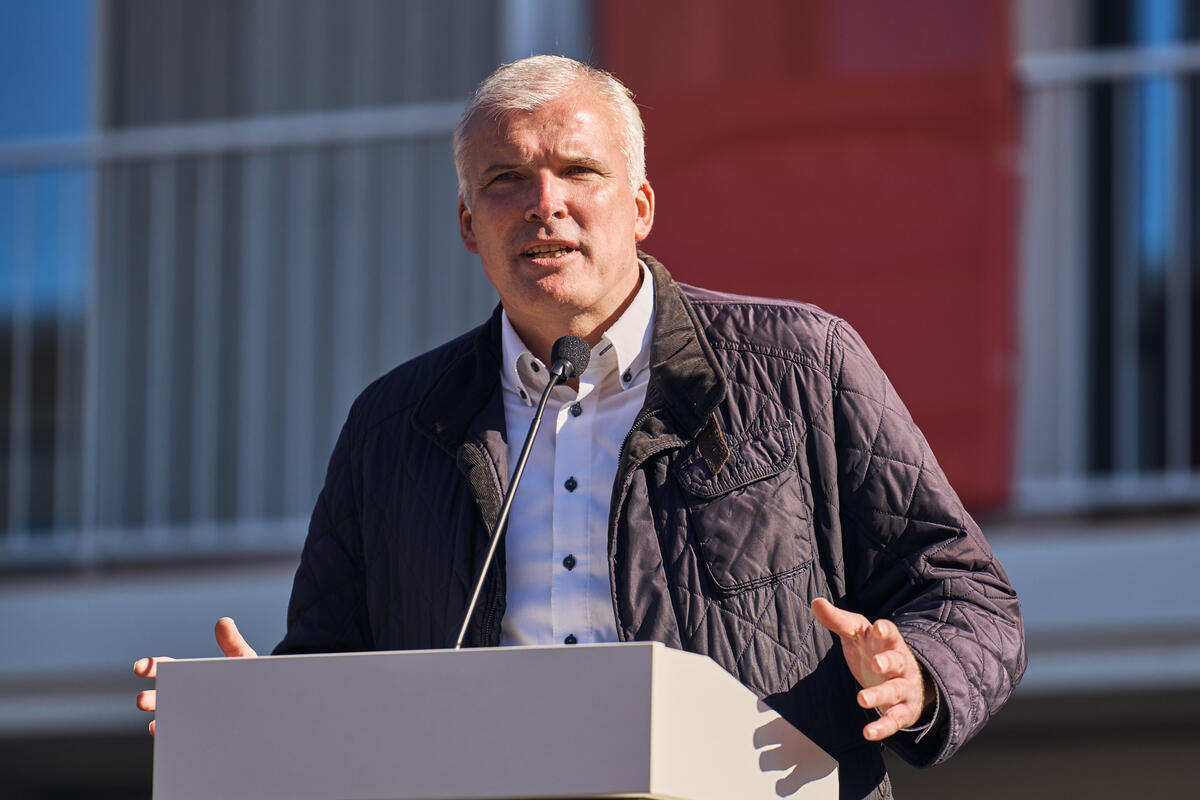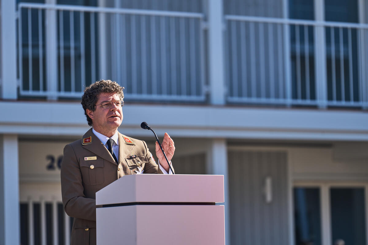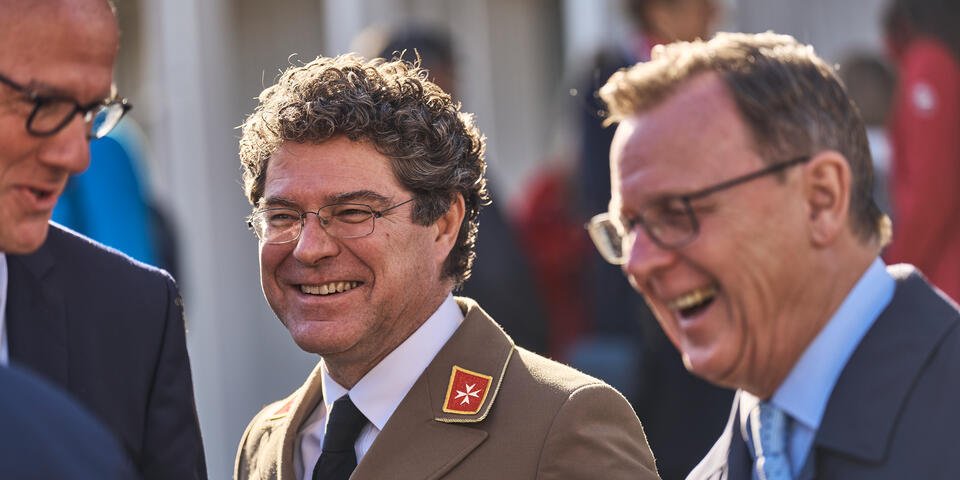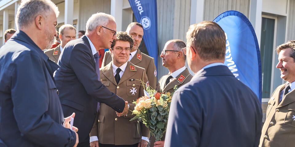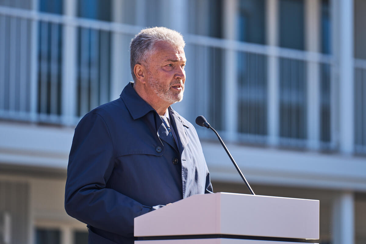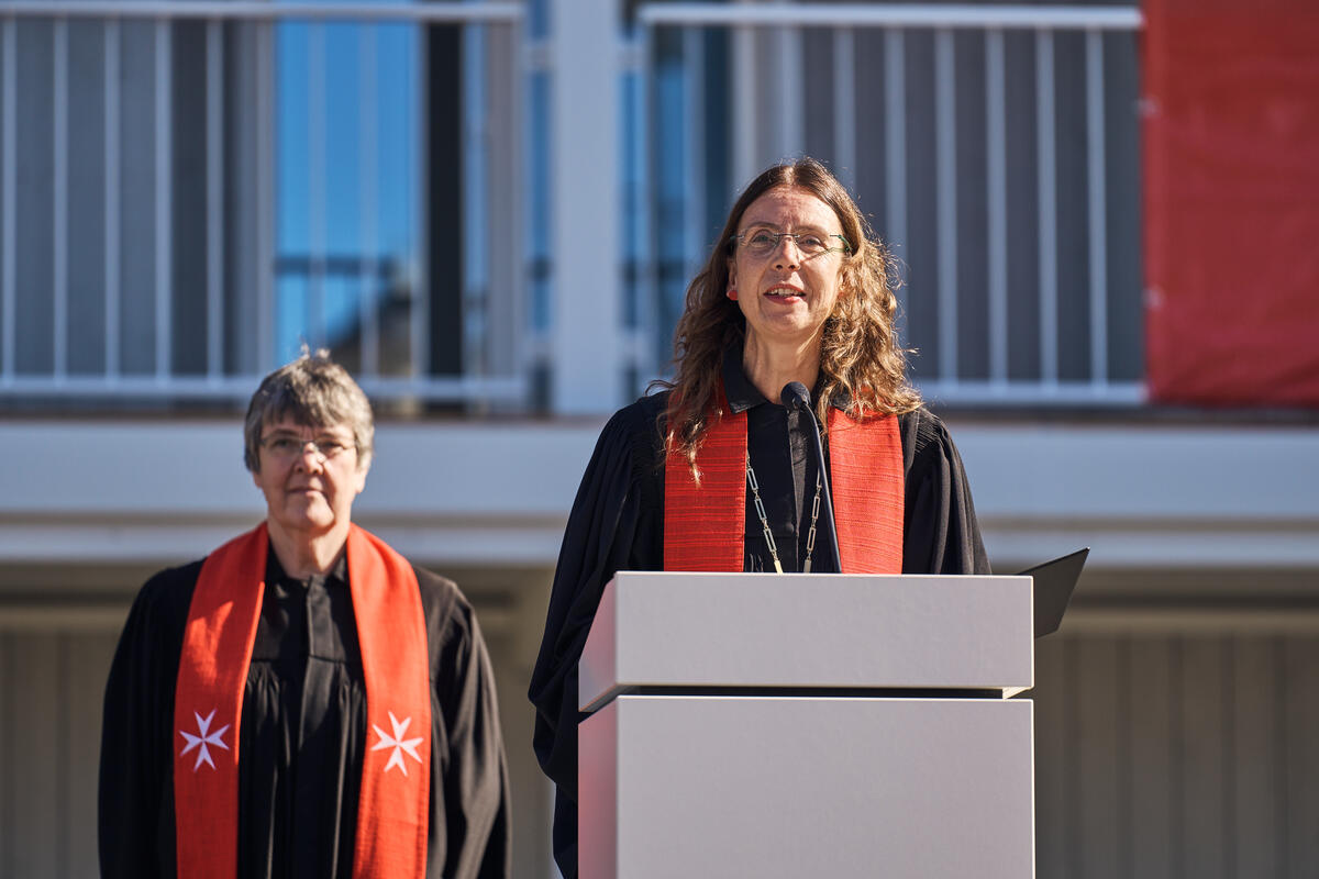 Landesvorstand Andreas Weigel begrüßte die Gäste aus Politik, Gesellschaft und der Johanniter-Welt im Innenhof des Wohnkomplexes und führte zugleich durch die Eröffnungsfeier. Ministerpräsident Bodo Ramelow, Oberbürgermeister Andreas Bausewein und Bundesvorstand der Johanniter-Unfall-Hilfe gehörten ebenso zu den Gastrednern wie der Geschäftsführer Ost von Köster GmbH für alle beteiligten (Bau)Firmen, ohne die dieses Projekt nicht realisierbar gewesen wäre.