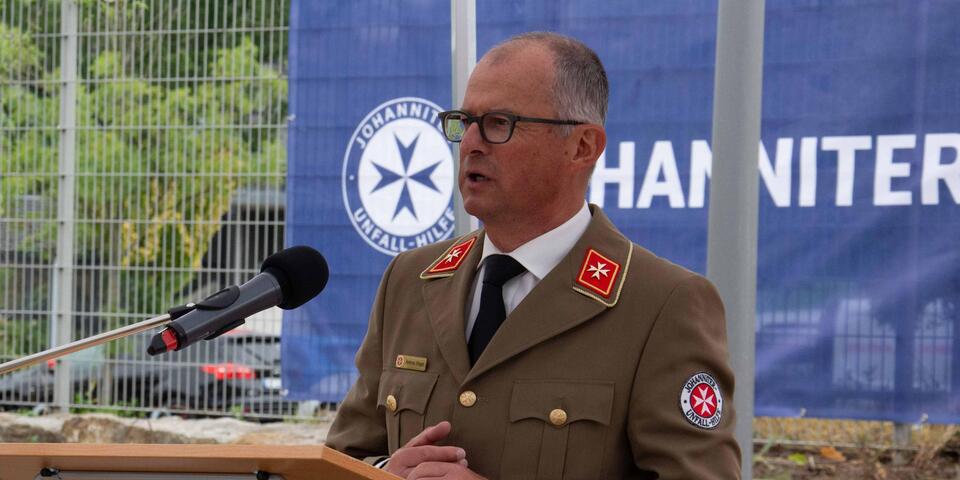 Nach dem Auszug aus der Kapelle sprachen S.K.H. Dr. Oskar Prinz von Preußen, Herrenmeister des Johanniterordens, Andreas Weigel, Landesvorstand und Bauherr der AndreasGärten und Christian Meyer-Landrut, ehrenamtlicher Bundesvorstand und Architekt zu den Gästen. Landesvorstand Weigel betonte in seinem Grußwort die Wichtigkeit des Projektes für den Landesverband, dankte den bisherigen Spenderinnen und Spendern für ihre großzügige Unterstützung und ordnete das weitestgehend spendenfinanzierte Projekt in das Gesamtprojekt in der Landeshauptstadt von Thüringen ein.