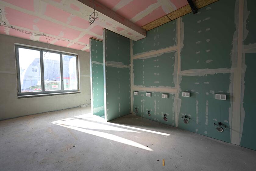 Trockenbaumaßnahmen für die Vorbereitung der Sanitäranlagen.