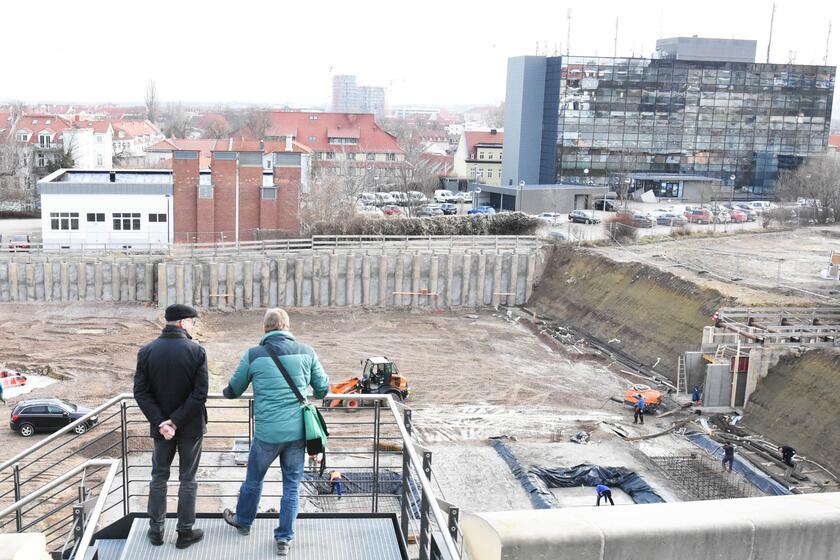 Andreas Weigel, Mitglied im Landesvorstand der Johanniter-Unfall-Hilfe e.V. in Sachsen-Anhalt und Thüringen, besuchte am Mittwoch die Baustelle am Fuße des Petersbergs.