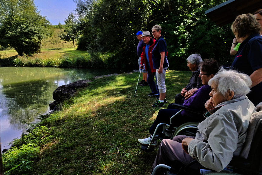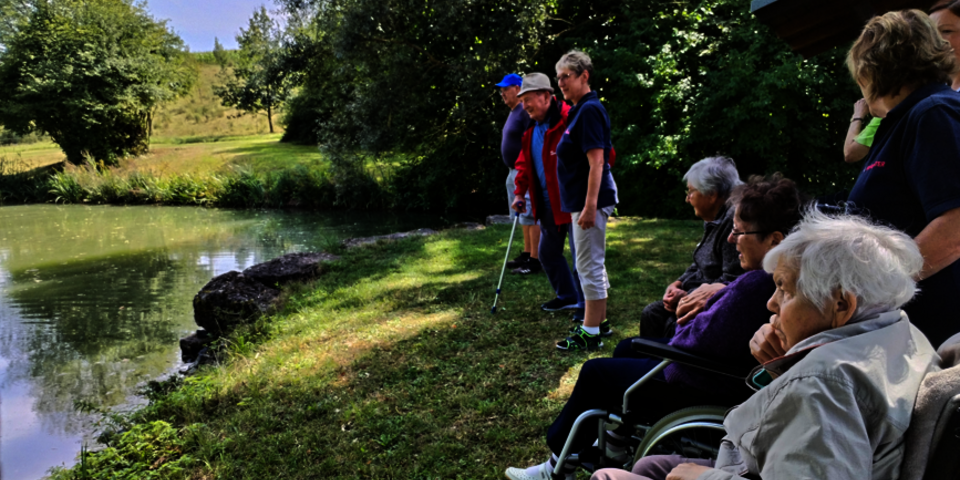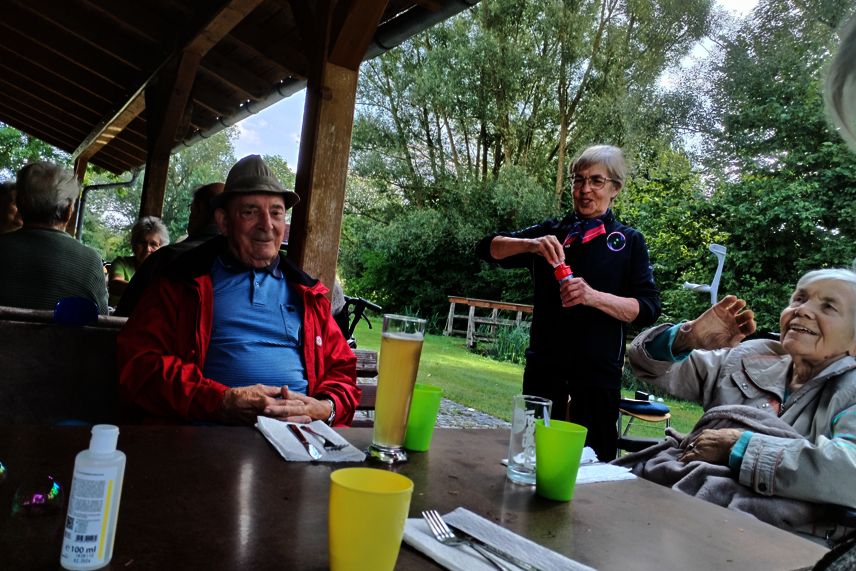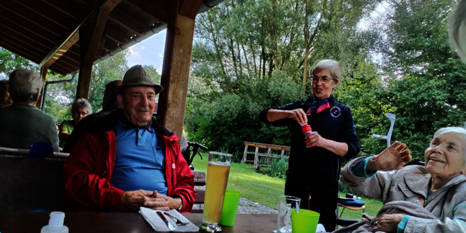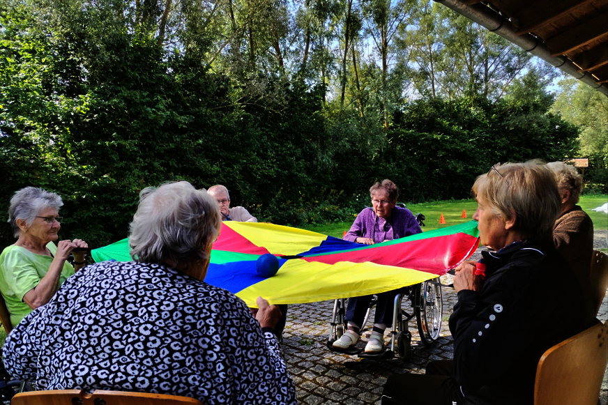 Bei strahlendem Wetter feierten die Senioren mit Musik und Gesang. Besonders beliebt war das gemeinsame Spiel mit dem Schwungtuch, bei dem viel gelacht wurde. Ein weiteres Highlight war das Füttern der Fische im Schwimmbecken.
