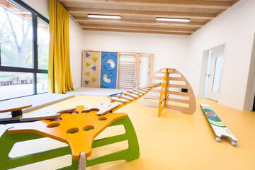 - Bewegungsraum. Hier werden die Kinder dazu eingeladen, sich sportlich auszutoben.