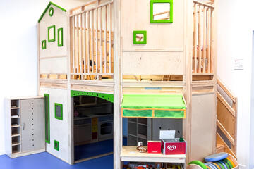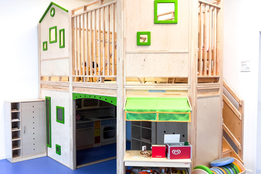 - Rollenspielraum. Neben einem Puppenhaus wurde auch eine kleine Wohnung für die Kinder eingerichtet. Sie können in unzählige Rollen schlüpfen, sich in ihnen ausprobieren und entwickeln so ihre eigene Persönlichkeit spielerisch weiter.