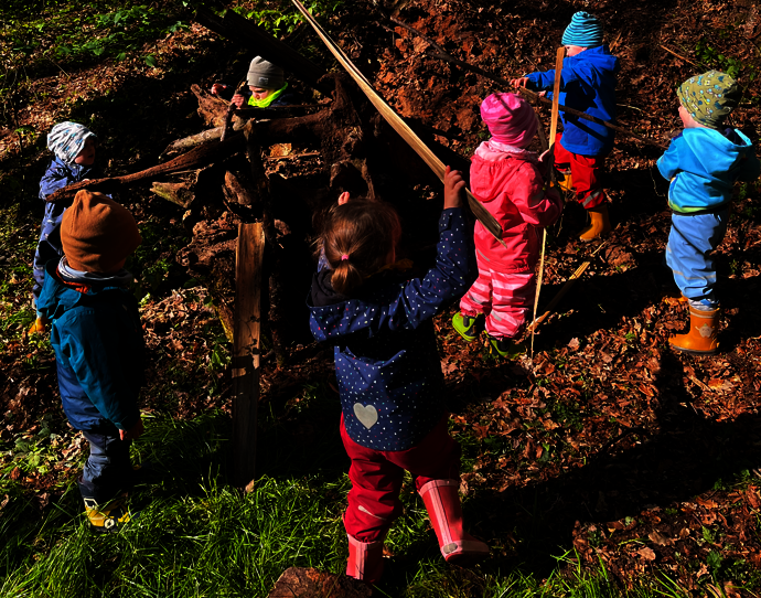 Bei uns steht das Erleben der Natur im Mittelpunkt unseres pädagogischen Konzepts. Gemeinsam mit unseren Erzieherinnen und Erziehern erkunden die Kinder den nahegelegenen Wald in all seinen Facetten. Wir legen großen Wert darauf, dass die Waldgeister eine enge Bindung zur Natur entwickeln und diesen mit allen Sinnen erleben können. Ein besonderes Highlight ist unser regelmäßiges Waldfrühstück, bei dem die größeren Kinder morgens in den Wald wandern, inmitten der Natur gemeinsam essen und die frische Luft genießen.