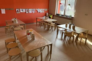 Wir bieten Platz für insgesamt 90 Kinder und sind in einen Krippen- und einen Kitabereich unterteilt.