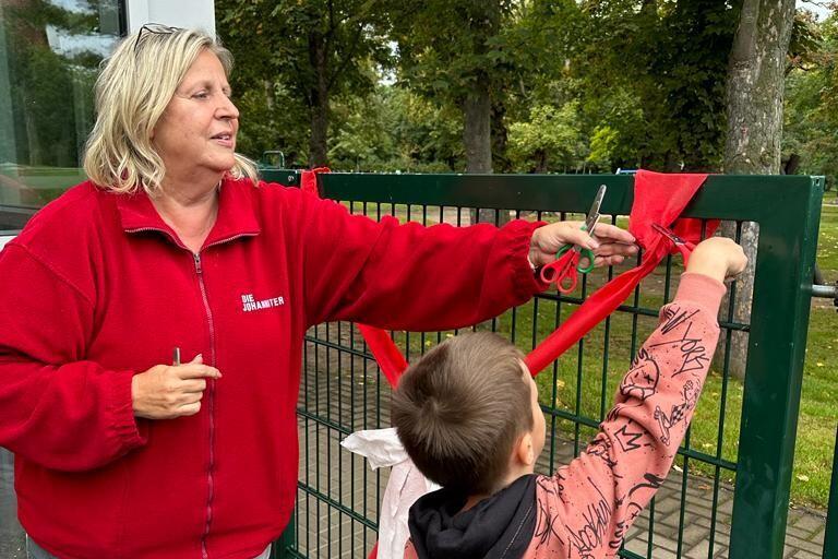 Aufregung pur bei den Kinder der Kita "Waldschule", denn nach langen vier Wochen der Baustelle auf ihrem Außengelände wird endlich ihr neuer Spielplatz eröffnet. Dank großzügiger Zuwendungen der Landeshauptstadt Magdeburg konnte die Einrichtung fünf hochwertige neue Spielgeräte anschaffen: ein Spielhaus, eine Kletterkombination, eine Spielburg, eine Schaukelkombination und eine Wippe.