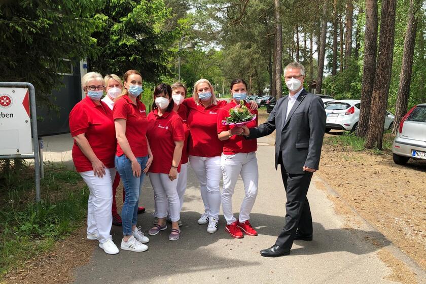 Regionalvorstand Uwe Leicht nutzte das Jubiläum für einen Besuch des Dienstes und bedankte sich für die Arbeit und besonders das herausragende Engagement in den schwierigen Zeiten der Corona-Pandemie.
