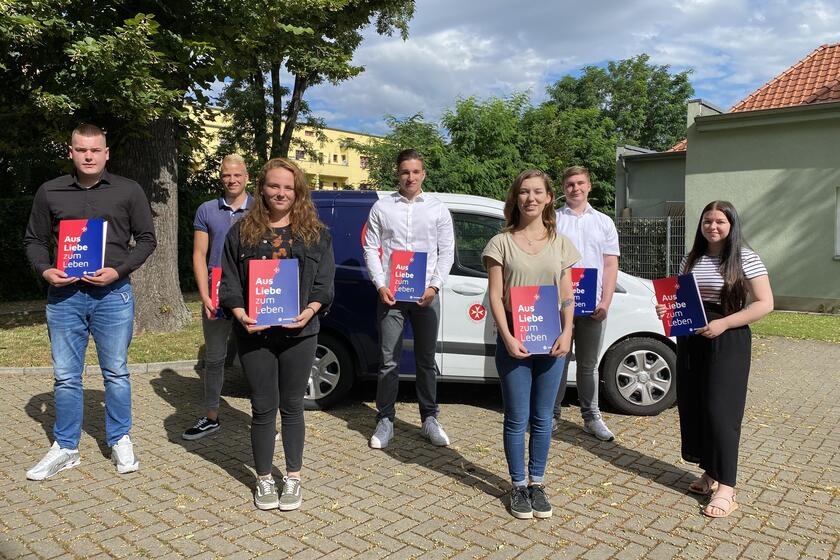 Heute haben sieben junge Erwachsene einen Ausbildungsvertrag zum Notfallsanitäter in unserer Geschäftsstelle Magdeburg unterzeichnet. Der praktische Teil erfolgt künftig auf den Lehrrettungswachen in Magdeburg, Colno, Hermsdorf, Schönebeck und Calbe sowie an Krankenhäusern im Umfeld von Magdeburg, die schulische Ausbildung an der Johanniter-Akademie Mitteldeutschland am Standort Magdeburg. Unser Regionalvorstand Stephan Klauert und Fachbereichsleiter Gerald Wienhöfer hießen die Auszubildenden herzlich willkommen und wünschten einen guten Ausbildungsstart am ersten September, denn dann beginnt die dreijährige Ausbildung.