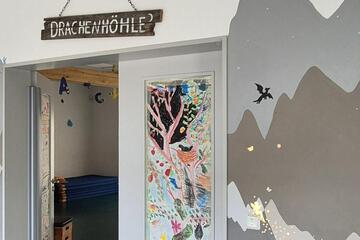 Inmitten eines bunten, blühenden Gartens steht die Kita Drachenland – ein Ort, an dem Lachen, Neugier und Freude den Alltag prägen. Die hellen und einladenden Räume sind mit liebevollen Kunstwerken der Kinder gestaltet und laden zum Spielen, Lernen und Entdecken ein.