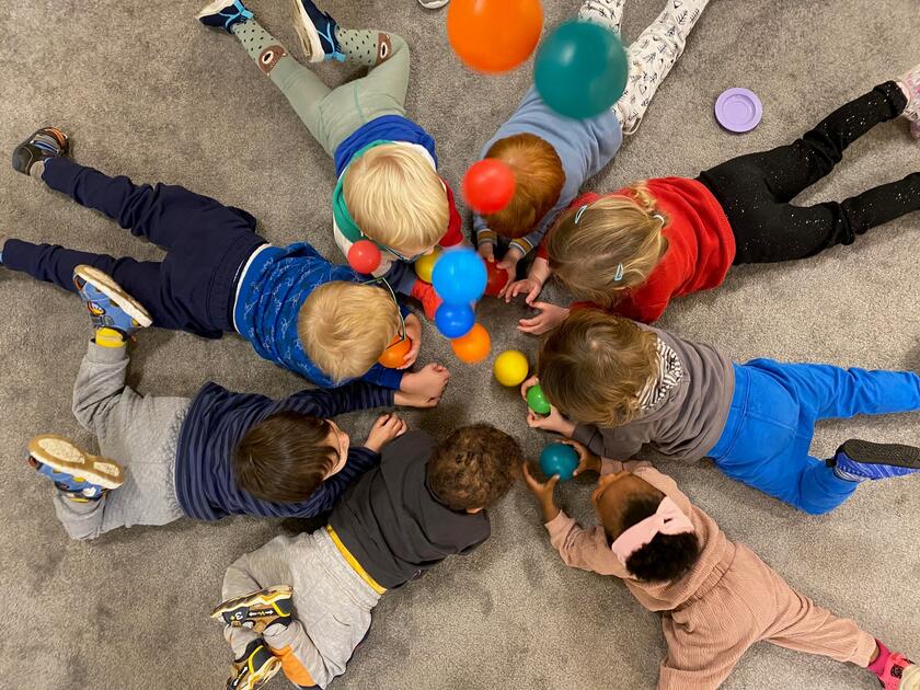 Gleichzeitig fördern wir durch gezielte Bewegungsangebote die motorischen Fähigkeiten, das soziale Miteinander sowie die Selbstständigkeit der Kinder – immer in ihrem Tempo und mit Blick auf ihre Stärken.