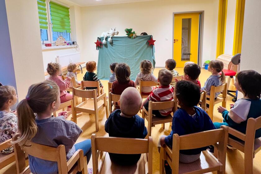Was unsere Kita besonders macht, ist die Verbindung aus Geborgenheit, Bewegung und Kreativität: Neben den frisch sanierten Gruppenräumen laden ein großer Bewegungsraum, eine Kreativwerkstatt und ein Snoezelraum zu freiem Entdecken, Entspannen und Gestalten ein.