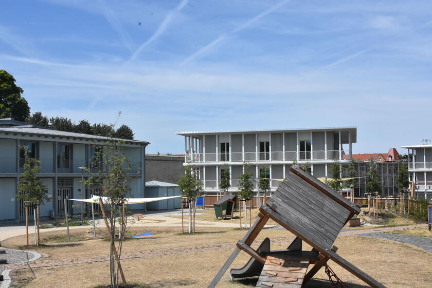 Die Kindertageseinrichtung "Petersbergwichtel" gehört zum Projekt "AndreasGärten", das die Johanniter auf einer ehemaligen Brachfläche im Stadtzentrum errichtet haben.