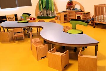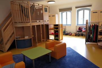 - Im Rahmen der offenen Arbeit betreuen wir im Kinderkrippenbereich bis zu 40 Kinder im Alter von einem bis drei Jahren und im Kindergartenbereich bis zu 71 Kinder im Alter von drei Jahren bis zum Schuleintritt.