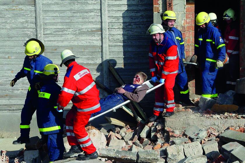 Ob Massenevakuierung nach einem Bombenfund, Versorgung der Helfer im Hochwassereinsatz oder Havarien in Industriegebieten - wenn die Einsatzkräfte Unterstützung benötigen, rücken unsere ehrenamtlichen Helferinnen und Helfer des Katastrophenschutzes mit aus. Sie bauen Notunterkünfte auf oder kommen mit ihrer Feldküche zum Einsatz. Auf ihre Einsätze werden sie durch regelmäßige Weiterbildungen sowie praktische Übungen vorbereitet.