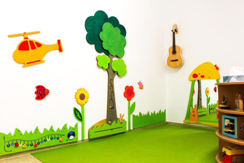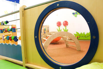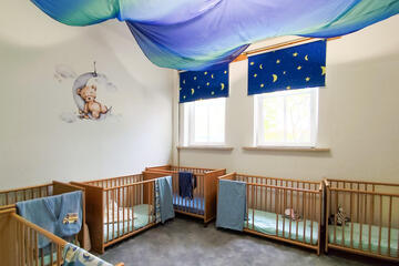 Mit etwa drei Jahren wechseln die Kinder in die obere Etage in den offenen Bereich der "Sonnen". Hier haben die Kinder die Möglichkeit in verschiedenen liebevoll eingerichteten Funktionsräumen sich auszuprobieren: