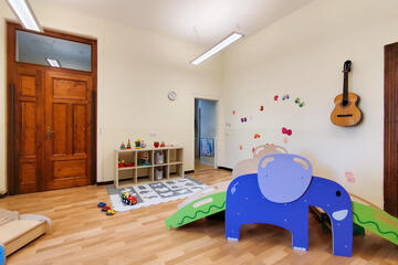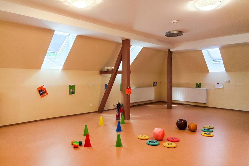- Ein Multifunktionsraum für Musik, Bewegung, Kunst und zum Schlafen für alle Kinder (Ü3)