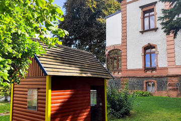 Unser Kindergarten blickt auf eine lange Geschichte zurück. Das Gebäude wurde 1895/96 ursprünglich als Villa für den Vorstand der Triptiser Porzellanwerke erbaut und gehörte damals zum Eigentum der Fabrik. Nach der Enteignung im Jahr 1945 wurde das Haus in die Stadtverwaltung integriert und seit 1964 als Kindergarten genutzt. Im Jahr 1993 erfolgte die Übernahme durch die Johanniter-Unfall-Hilfe e.V., wobei das Gebäude und das Grundstück weiterhin im Besitz der Stadt Triptis sind, die mit dem Träger eine Nutzungsvereinbarung pflegt. Die Villa befindet sich etwas außerhalb des Stadtzentrums, in der Nähe eines später errichteten Wohngebiets, und wird von zwei verkehrsreichen Straßen umgeben. Unser Außengelände umfasst einen parkähnlichen Garten von etwa 3000 Quadratmetern sowie eine asphaltierte Spielfläche vor dem Haus. In unserer Einrichtung bieten wir Platz für bis zu 69 Kinder im Alter von 1 Jahr bis zum Schuleintritt. Die Kinder sind in zwei Kleinkindgruppen für Kinder unter 3 Jahren und drei altersgemischten Gruppen bis zum Schuleintritt organisiert. Jede Gruppe hat eine feste Bezugsperson, die als pädagogische Fachkraft für die Betreuung und Förderung der Kinder verantwortlich ist. Darüber hinaus legen wir großen Wert auf gruppenübergreifende Angebote und offene Bildungsprozesse, die oft schon im Kleinkindalter beginnen und die individuelle Entwicklung der Kinder gezielt unterstützen. Geöffnet ist unsere Einrichtung montags bis freitags von 6.00- 16.30 Uhr.