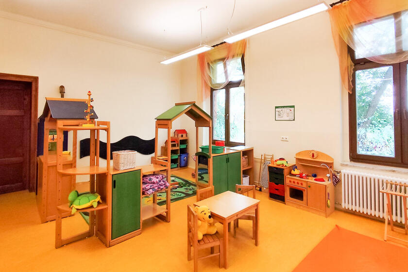 Im Dachgeschoss können max. 18 Kinder im Alter ab drei Jahren bis zum Schuleintritt betreut werden: