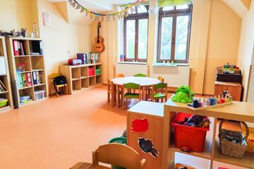 Das Erdgeschoss bietet Platz für max. 32 Kinder ab dem 3. Lebensjahr bis zur Schuleinführung: