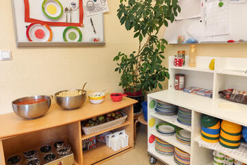 - 5 Funktionsräume (Verkleidungs-, Musik-, Rollenspiel-, Bauzimmer/Gruppenraum)