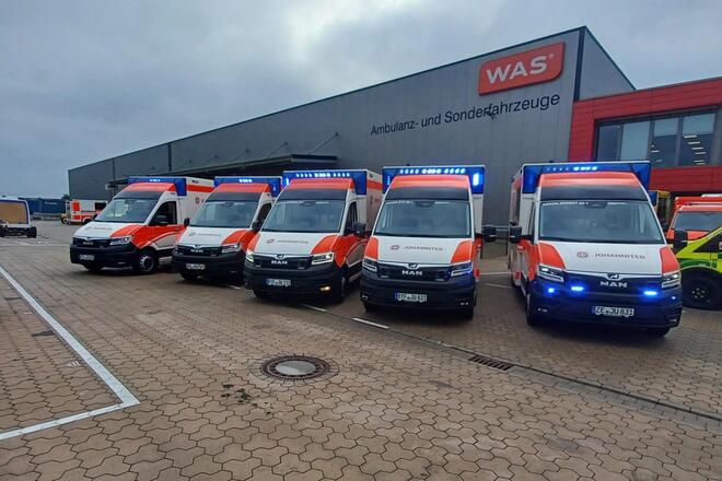 Am 15.10. 2025 haben wir die ersten fünf von insgesamt neun neuen Rettungswagen für die Rettungswachen im Landkreis Anhalt-Bitterfeld übernommen.