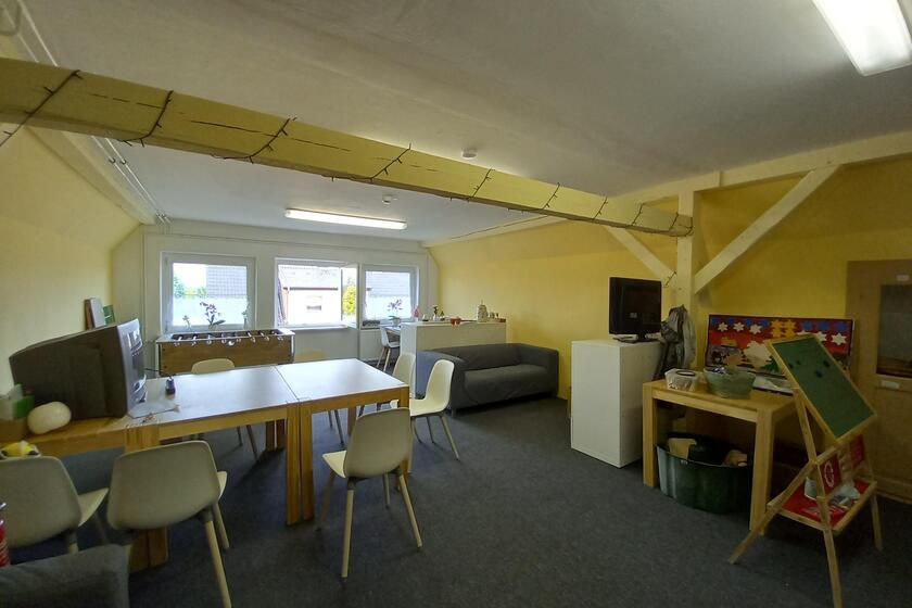 Das Team der Sozialarbeiter wird hier von Elke unterstützt. Gemeinsam werden verschiedene Aktivitäten und pädagogische Workshops angeboten. Kinder und Jugendliche können auch Möglichkeiten zum Basteln, einen Kickertisch und viele Brett- und Kartenspiele nutzen.