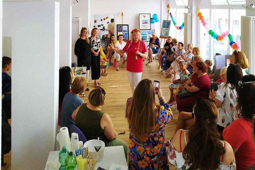 Am Freitag haben die zugewanderten Ukrainer in Eigenregie ein buntes Programm auf die Beine gestellt, viele kulinarische Köstlichkeiten vorbereitet und gesungen. Julia und Diana Chorna erfreuten alle Anwesenden mit ukrainischen Liedern in landestypischen Kleidern. Unsere ehrenamtliche Tanja Hogel berichtete zusammen mit Liudmila Jevtushrnko wissenswertes über die Ukraine. Ein besonderer Dank an diesem Tag geht an Marina Schukina, die einen Workshop für Broschengestaltung anbot und an Sergey Gregoriev, der die Bilder seines Zeichenkurses im Mehrgenerationenhaus in Gotha in die für diesen Tag in die Wunderkammer verlegte.